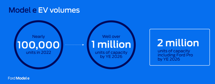 Lawler表示,2026年,Model e的年销量将达到120万辆左右,产量目标为200万辆。不过,福特曾表示,到2023年底,该公司在全球范围内的电动汽车产能为60万辆,离200万辆有着不小的差距。