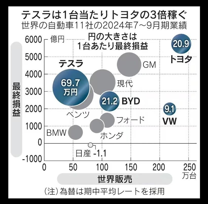 值得一提的是,单车利润方面,特斯拉名列前茅,以69万日元领先奔驰的47万日元,是丰田20万日元的三倍之多。